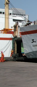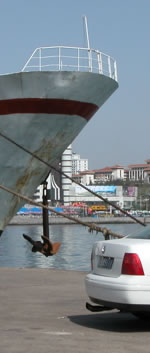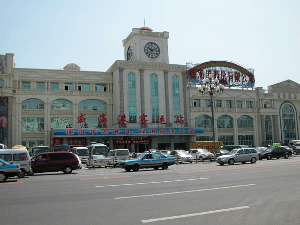 5月3日,我們在前一天到達酒店的時候已經被酒店職員告知買到大連的滾裝船票要盡早,否則好艙的票都會賣光!早上8點,我們來到了酒店對面的威海港客運碼頭,非常可惜是頭等艙和二等艙的票早就已經賣光,剩下來我們只好買三等艙的票,售票櫃台的職員態度冷淡,也只說山東話,不免令我和韓勇感覺不快。我們當天乘的是“天鷹號”晚上9點的船(車船票:400元,車保險:50元;人船票:150元(三等艙),人保險:2元,一共602元),帶車乘搭渡輪的朋友們要注意,你需要出示車輛的“機動車行駛証”(香港俗稱的“牌簿”)和駕駛員有效的中國駕駛証方可購買滾裝渡輪的車船票,售票員在你購買船票的時候就會要求你提供。