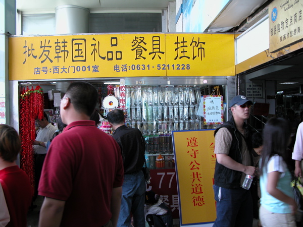即使用日本55年到73年近20年的發展與中國78年改革開放後的20多年比較,日本經過不到20年後人均GDP就達到4000多美金,中國經歷1978至2001長達23年的快速經濟發展01年人均GDP還不到1000美金。我想現在中國還是要紮紮實實的做些事情,不要外國人一說什麼“中國世紀的到來”,自己就當真地飄飄然起來,也跟著說些不設實際的“超越”大話,我們應該以歷史為借鑒,時常警惕。臨別“定遠號”我們就在船甲板上拍照留念然後到旁邊的韓國商城參觀,這里有著許多從韓國進口的食品,韓式餐飲業的用品,化妝品和服裝等等等,值得到訪。