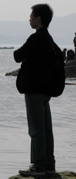 大連的海岸風景區附近都是滿佈了一個一個的小島,鴨綠江外,這裡也可以算是中國另一個最北方的海岸了,因為過了朝鮮後,中國再也沒有靠海的土地,對於我自己來說,我也很久沒看過這樣的海岸景象,遠望大海,眼睛肌肉放鬆比在城市裡舒服了許多,和韓勇在這裡逗留一會照過相後我們又驅車繼續前進,來到了另一個叫銀沙灘的景區,停車收費也是五元,沙灘要步行才能到達。來沙灘玩的人和我們香港人的習慣一樣,都會愛上燒烤,沙灘的小賣部也供應一切的燒烤用品食品等等,站在海邊石灘上望著海邊的的時候,我不禁想起“知子”了,此時我思考著,雖然她人在日本,但這一刻我和她身處的緯度相若,與她算是最接近的了!假若不是為了回避大陸的反日,這次的行程她可以跟我一起走,此時此刻,她也能夠伴隨在我的身邊。。。。。