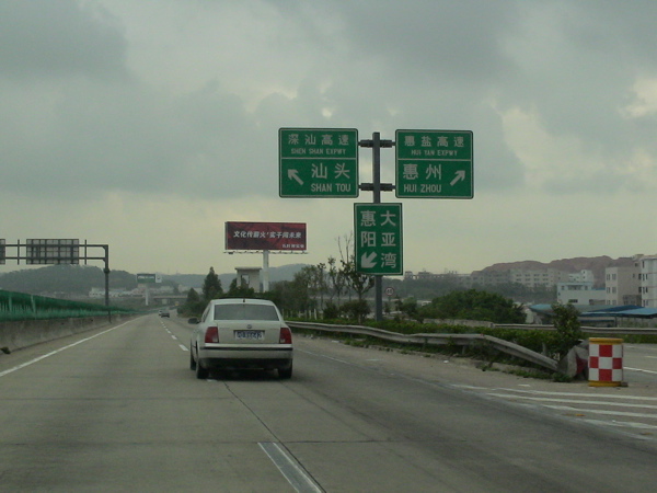 | 在此我需要告訴個位在大陸有開車的朋友,積碳是對引擎做成傷害,而積碳的主要原因往往是油品不合格,所以大家在加油的時後要特別注意。在深圳停留一晚, 早上檢查車輛, 一切正常, 九時許離開深圳, 沿著先前所走相同的路往福建進發, 三月底仍然是春天, 南方天氣多霧多雨, 沒有變化, 仍然選擇兩天走完到上海的路, 中午十二時, 車子開到汕頭市, 因為時間不趕, 就在市內午膳, 約二時許, 到達了上次壞車的地方, 竟然給我發覺上次拖車留下的污布, 仍然留在路邊。呀! 這樣的公路管理, 還要八百元的收費。 |