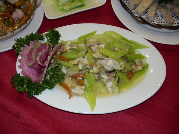 在接近廈門時轉走廈漳高速公路, 經泉州再轉福廈高速, 晚上八時經過福州, 原來我們希望在浙江溫州休息, 但由於部份路段大霧, 平均車速只能在90公里, 一路上發覺福建段穿山隧道和高架橋特別多和危險, 可以想像當日修路時, 工程如何艱巨, 晚上10時, 通過寧德, 估計應該可在12時左右到達溫州, 怎料車子開到福鼎附近, 前面突然大塞車, 後來資詢, 蒼南路段因大霧封閉, 沒辦法之餘, 唯有返回福鼎吃過晚飯, 馬上休息, 原來要收三百八十元的酒店住宿費用, 因午夜關係只收一百八十元。很奇怪這裡的送菜大多是酸酸甜甜, 侍應說這是地道福建北面的口味。 |